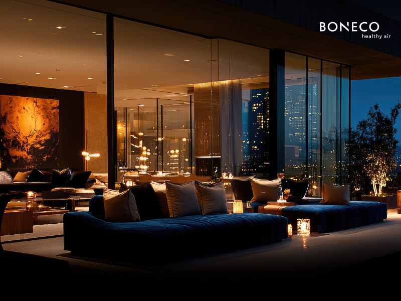 Khi đặt trong phòng khách villa hay penthouse, máy lọc không khí BONECO P710 không trở thành một vật thể lạc lõng mà hòa vào không gian như một phần của hạ tầng sống hiện đại. Cách tiếp cận này tương tự như điều hòa trung tâm hay hệ thống chiếu sáng âm trần, luôn hiện diện nhưng không phô diễn, góp phần nâng tầm trải nghiệm sống mà không làm ảnh hưởng đến gu thẩm mỹ tổng thể.