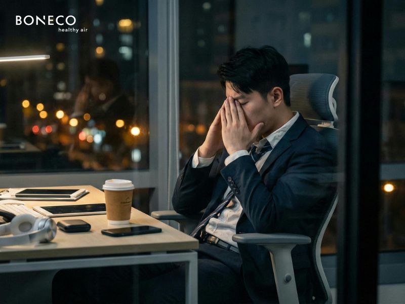 Một vấn đề khác thường gặp là mùi tích tụ và không khí tù đọng. Văn phòng sử dụng điều hòa liên tục thường thiếu trao đổi khí tươi, khiến CO₂ tăng cao, không khí trở nên “chết”, làm nhân viên dễ buồn ngủ và giảm hiệu suất vào buổi chiều.