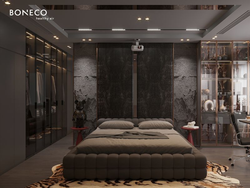 Vì vậy, khi lựa chọn máy tạo ẩm cho phòng ngủ Penthouse, gia chủ nên ưu tiên những thiết bị có công suất lớn, dung tích bình nước đủ cho cả đêm, độ ồn thấp và khả năng kiểm soát độ ẩm tự động. Khi kết hợp với máy lọc không khí và quạt đối lưu, hệ thống này sẽ tạo nên một môi trường không khí ổn định và dễ chịu, giúp phòng ngủ Penthouse thực sự trở thành không gian nghỉ ngơi lý tưởng cho sức khỏe và giấc ngủ.
