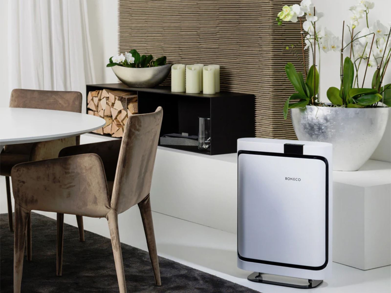 Ở cả hai loại hình không gian, máy lọc không khí BONECO thương hiệu Thụy Sĩ 70 năm chuyên gia về chất lượng không khí là giải pháp toàn diện giúp kiến tạo bầu không khí trong lành đạt chuẩn y tế châu Âu. Các model như BONECO P500, BONECO P710 được trang bị bộ lọc HEPA H13 đa tầng kết hợp than hoạt tính cao cấp, có khả năng loại bỏ đến 99,97% hạt bụi siêu mịn PM₂.₅, đồng thời khử mùi, lọc VOCs và formaldehyde phát sinh từ nội thất hoặc sơn mới. Với thiết kế tinh tế và độ ồn cực thấp, dòng máy này phù hợp cho căn hộ cao cấp, penthouse và biệt thự sang trọng, giúp không gian không chỉ trong lành mà còn yên tĩnh, thư giãn và chuẩn mực cho sức khỏe.