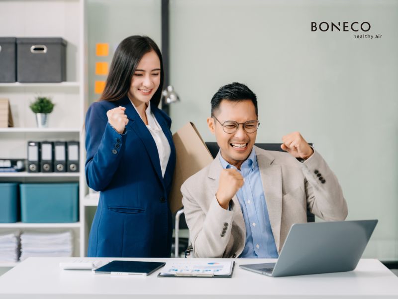 Máy lọc không khí giúp loại bỏ nhiều tác nhân gây ô nhiễm trong không gian kín, từ bụi mịn cho đến các chất gây dị ứng trong không khí. Khi môi trường làm việc được cải thiện, nhân viên sẽ cảm thấy dễ chịu hơn, hô hấp thoải mái hơn và duy trì được sự tập trung trong suốt ngày làm việc. Điều này mang lại lợi ích lâu dài cho doanh nghiệp thông qua việc nâng cao năng suất và giảm áp lực sức khỏe cho nhân sự.